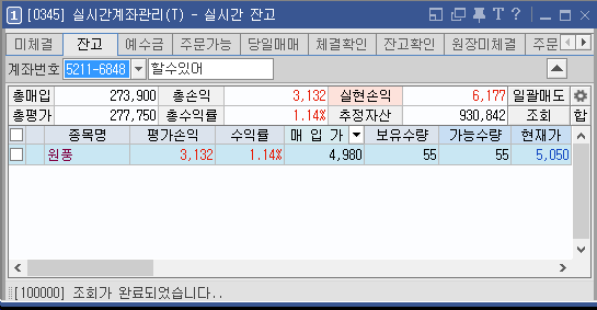 현재 나의 실시간 주식 계좌 잔고 . 추정자산 93만원 으로 한달 목표 수익 10~20만원 보고 매매를 해볼가 한다.